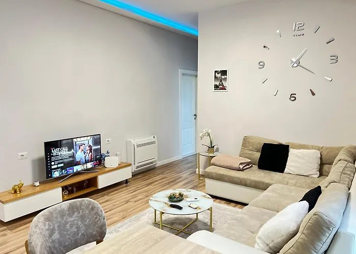 Lägenheten är belägen ca 10 minuters promenad från Tiranas centrum. Et'Hem Bey-moskén kan nås på 6 minuters promenadavstånd. Många matalternativ finns också på Pizzarte, som ligger inom 5 minuters promenad från lägenheten New Bazaar Apartment 02. New Bazaar Apartment 02 lägenhet är ett bra alternativ att bo på nära Toptani shoppingcenter.